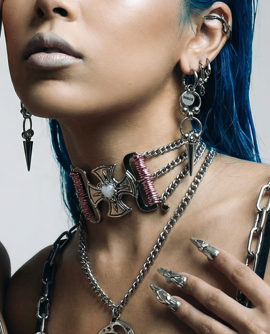 Pink Pearly Crossed Choker